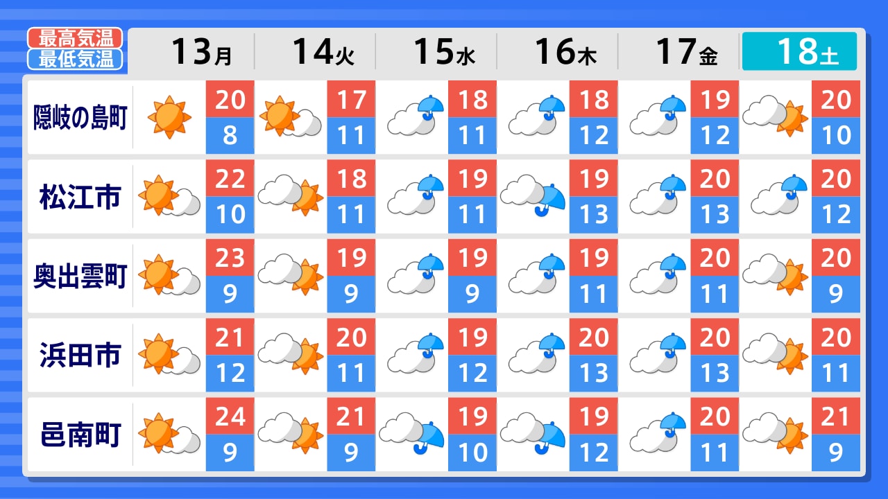 益田市 浜田市 大田市 邑南町 出雲市 松江市 奥出雲町 隠岐の島町
