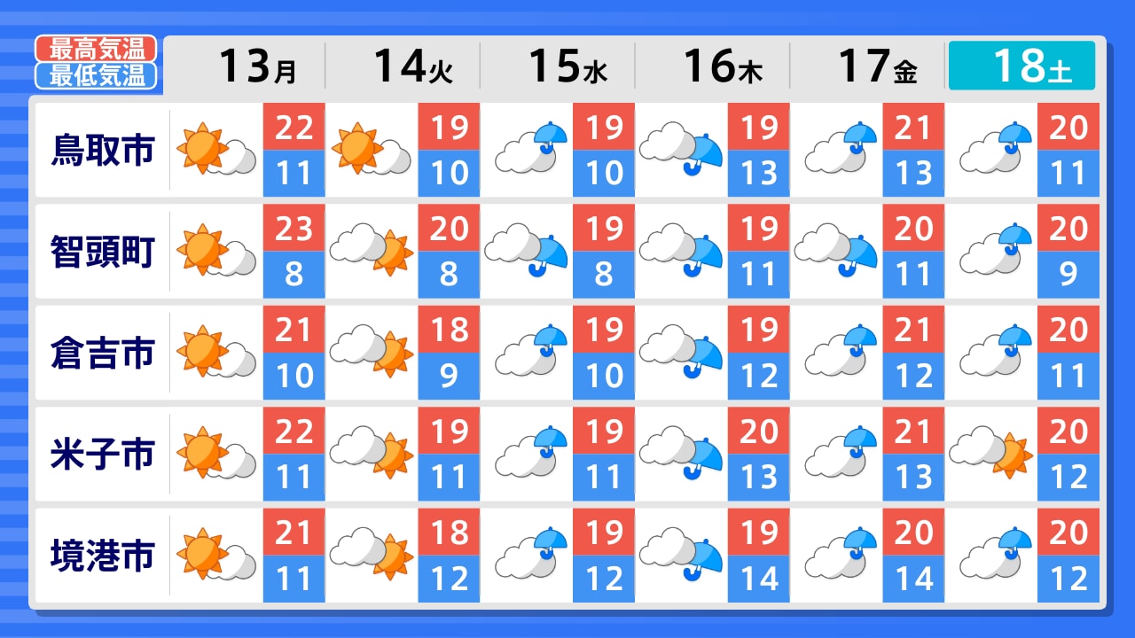 境港市 米子市 日南町 大山町 倉吉市 鳥取市 智頭町 若桜町