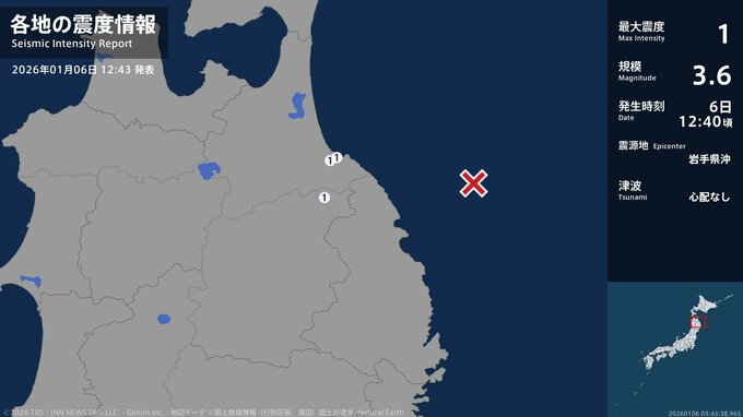 【速報】青森県で最大震度6強の強い地震 福島県は最大震度4 津波警報・注意報発表中