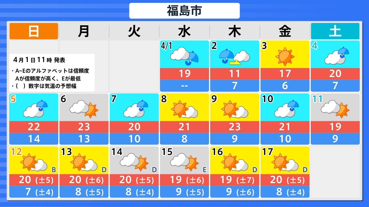 4月1日(水)の天気