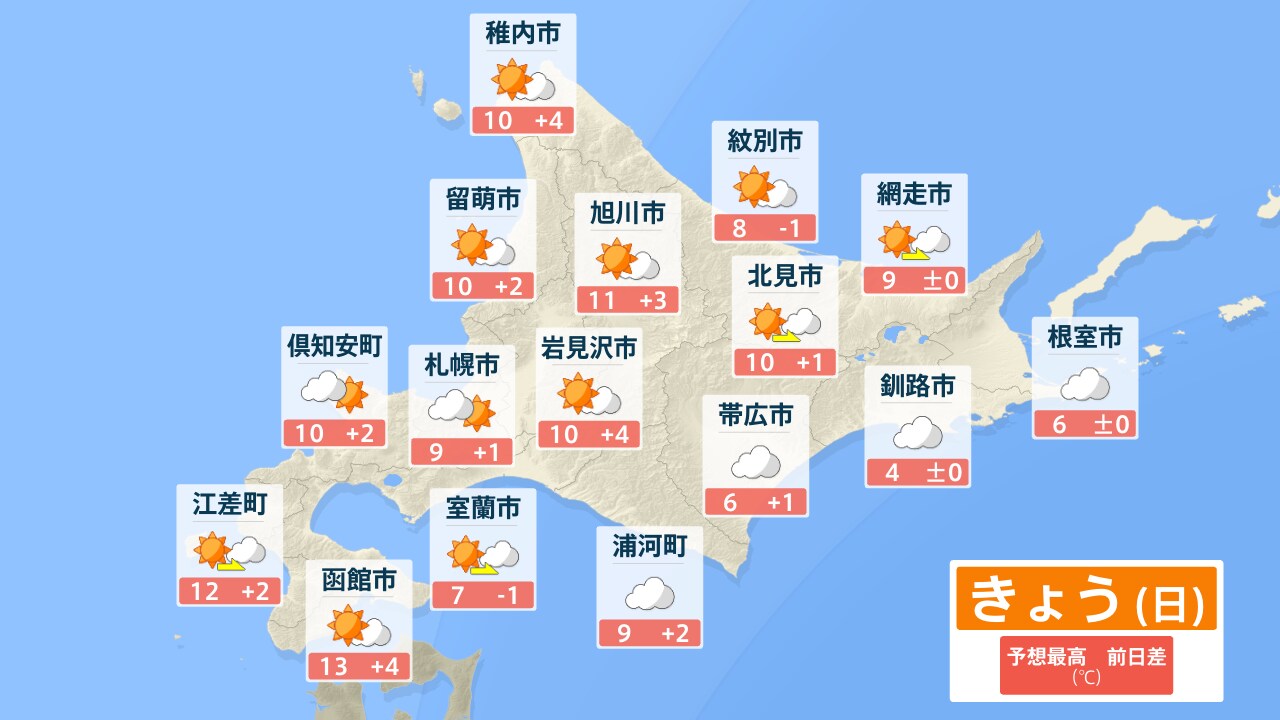 稚内市 留萌市 旭川市 紋別市 網走市 北見市 釧路市 帯広市 根室市 岩見沢市 札幌市 倶知安町 浦河町 室蘭市 函館市 江差町