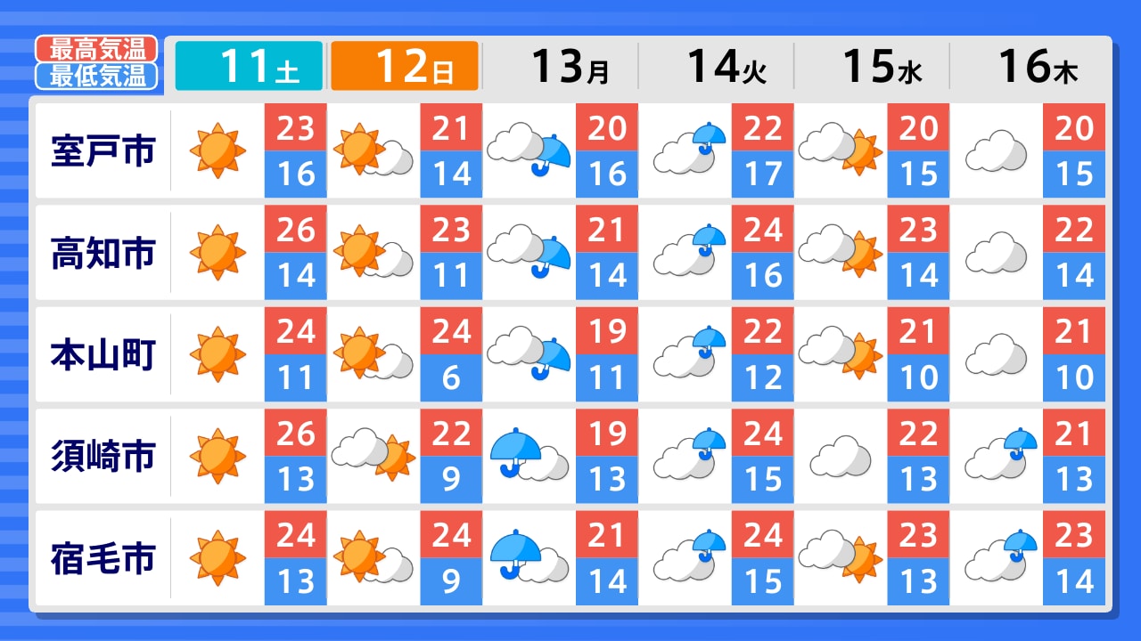 梼原町 四万十町 宿毛市 土佐清水市 須崎市 本山町 高知市 安芸市 馬路村 室戸市