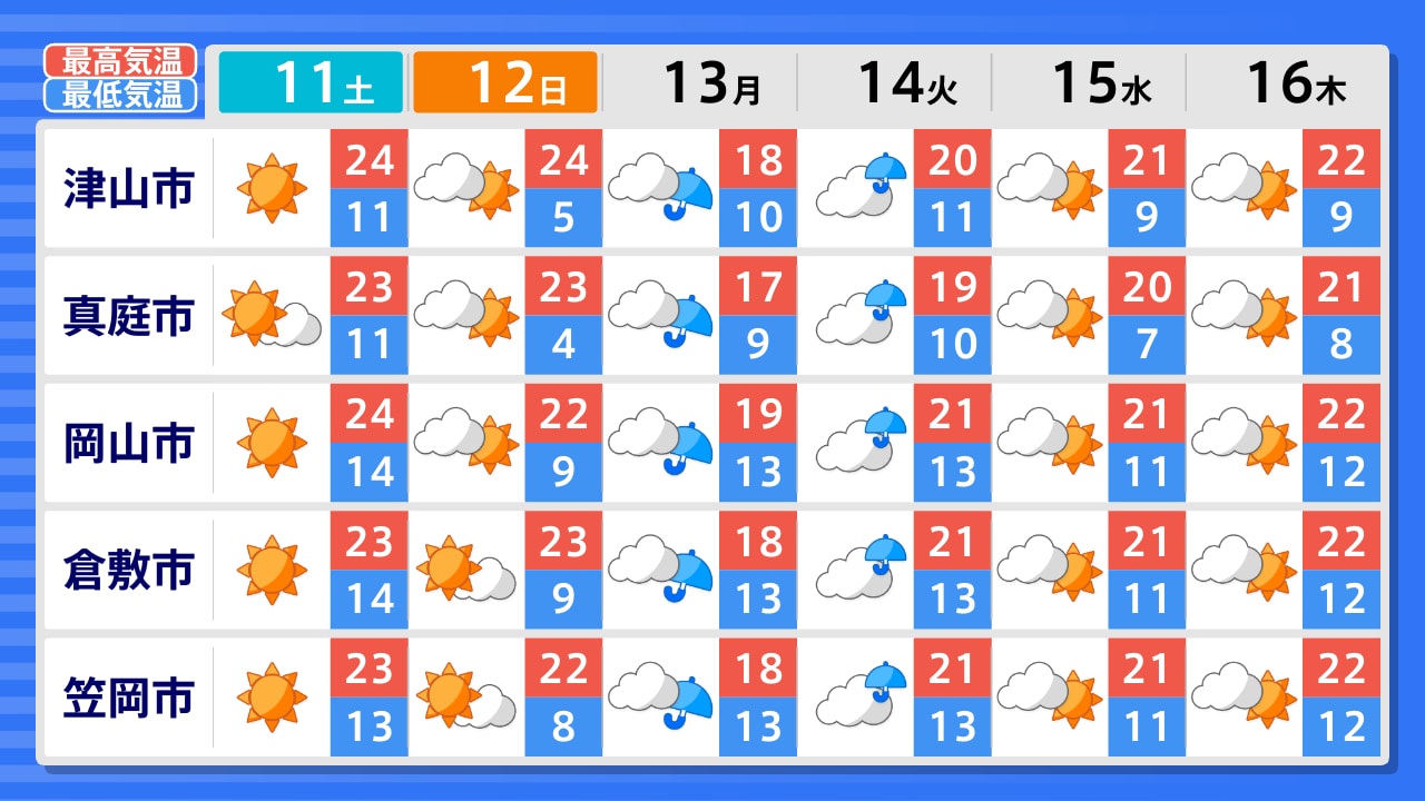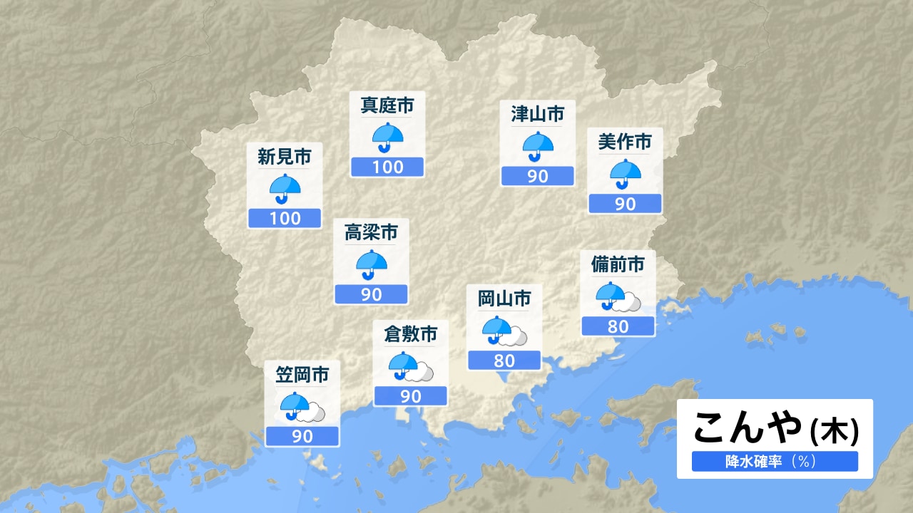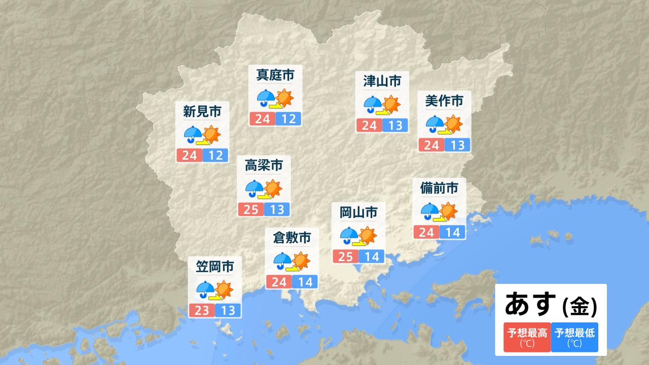 真庭市 新見市 高梁市 笠岡市 倉敷市 津山市 美作市 岡山市 備前市