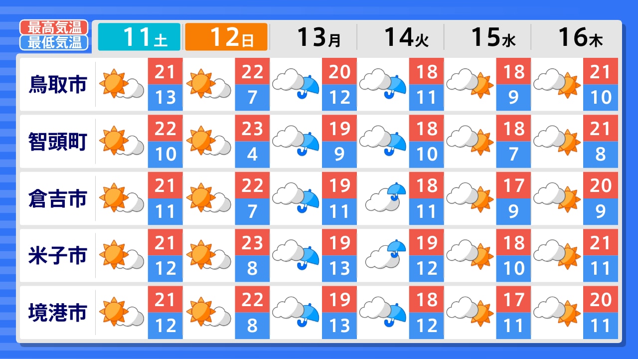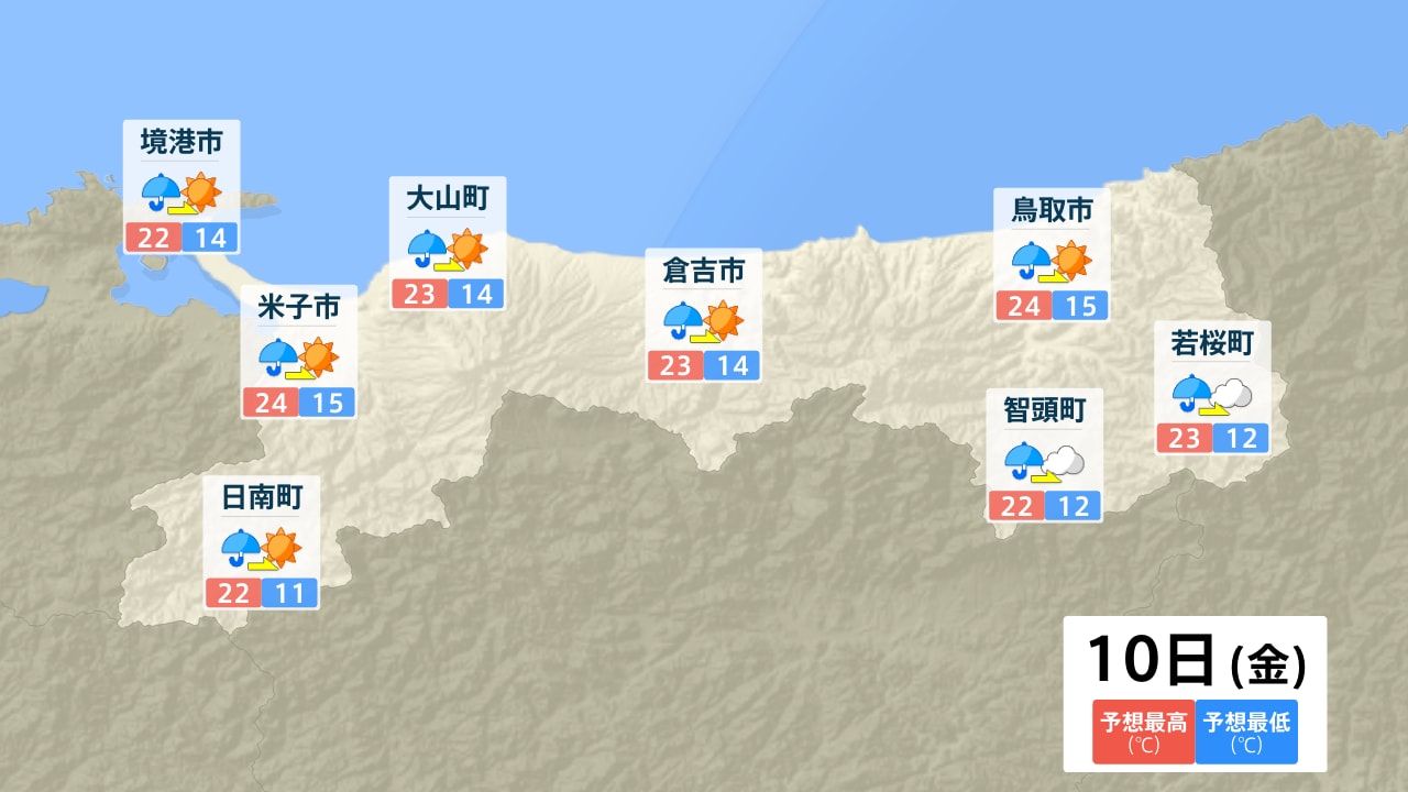 境港市 米子市 日南町 大山町 倉吉市 鳥取市 智頭町 若桜町