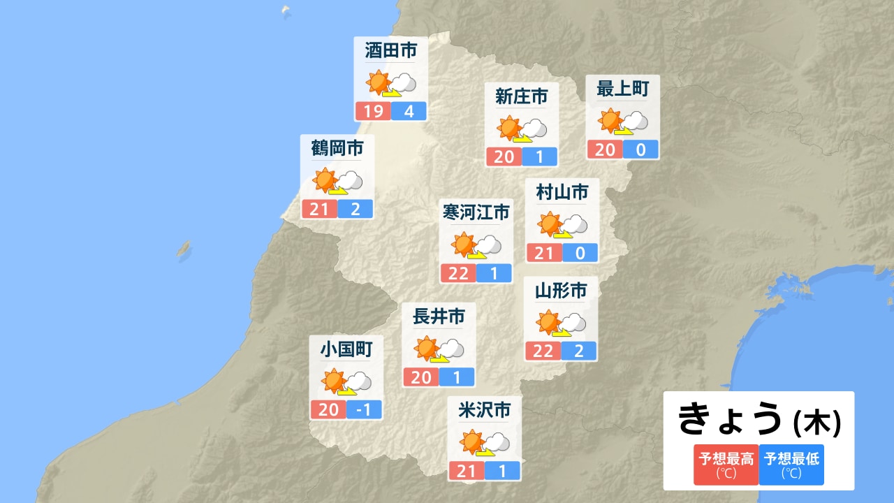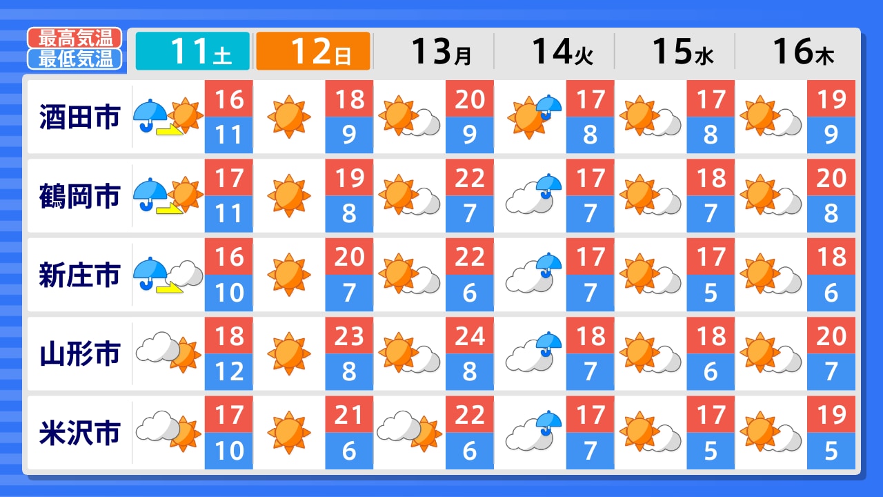 酒田市 新庄市 最上町 鶴岡市 寒河江市 村山市 山形市 長井市 小国町 米沢市
