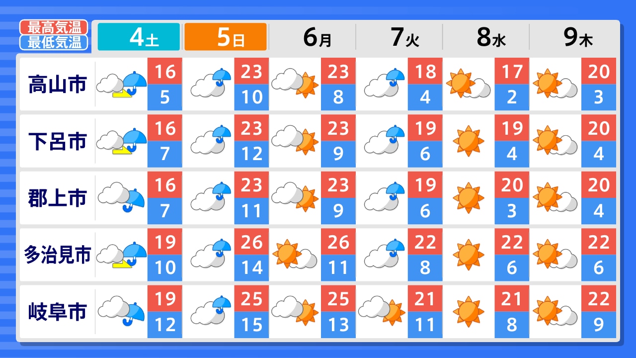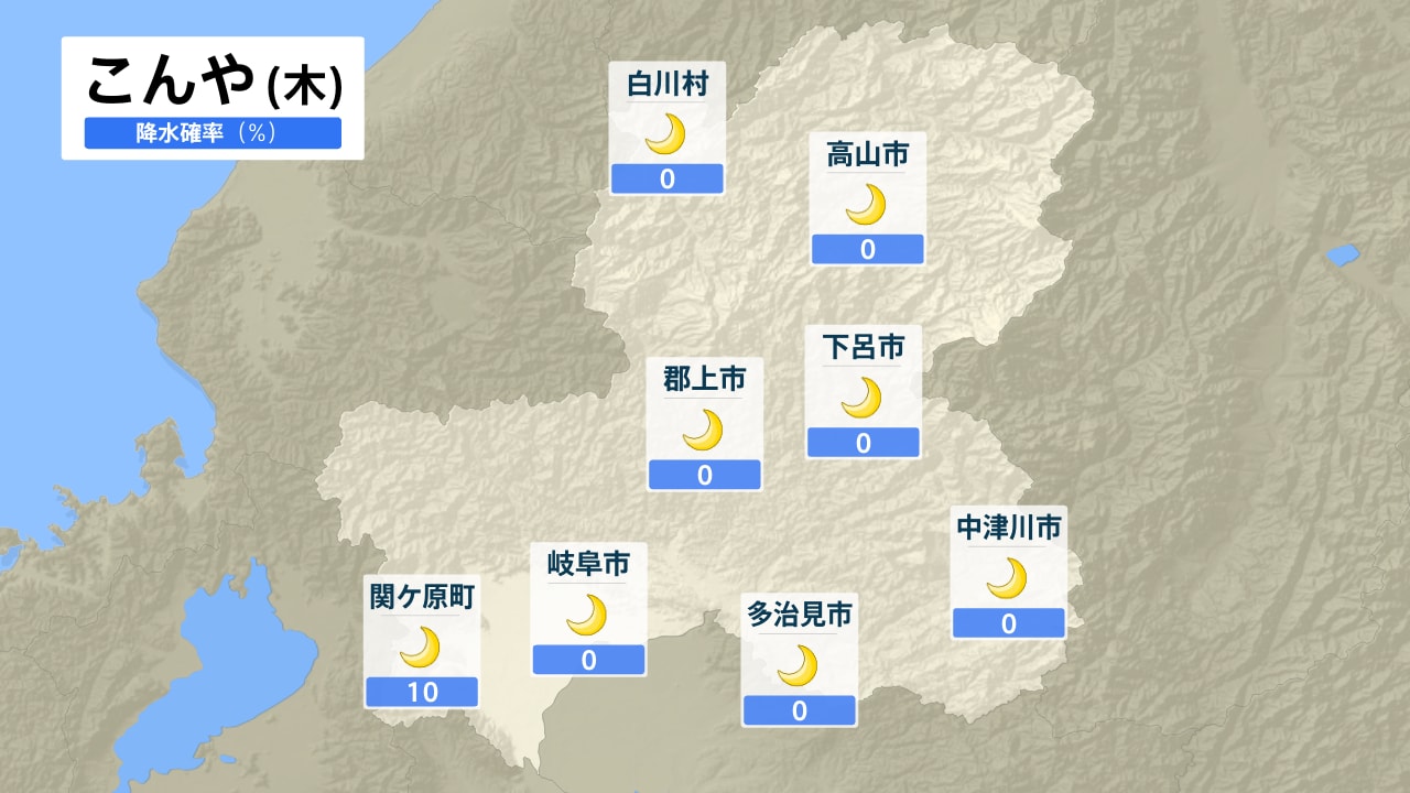 白川村 高山市 下呂市 郡上市 中津川市 多治見市 岐阜市 関ケ原町