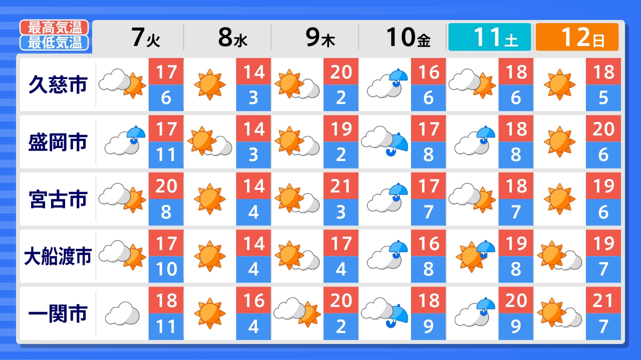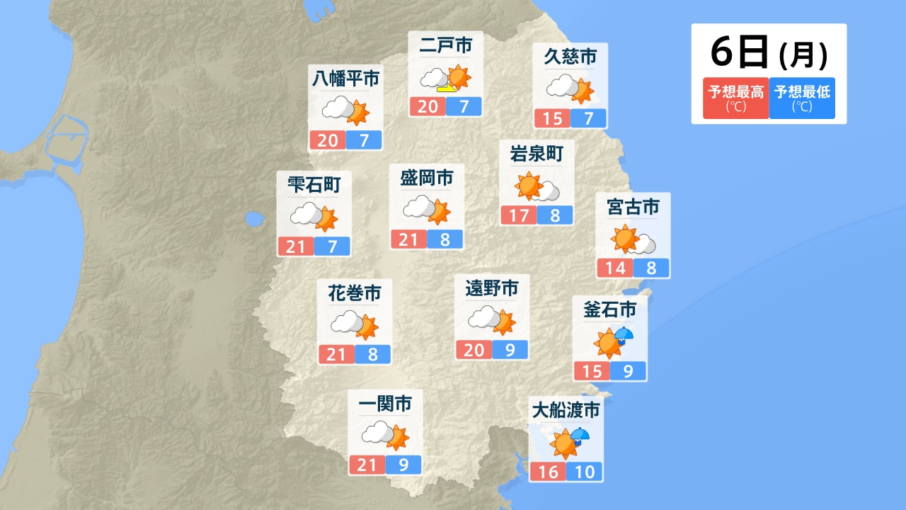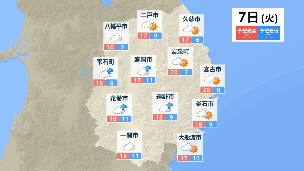八幡平市 二戸市 久慈市 雫石町 盛岡市 岩泉町 宮古市 花巻市 遠野市 釜石市 一関市 大船渡市