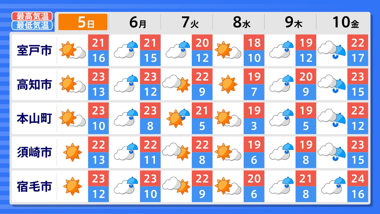 梼原町 四万十町 宿毛市 土佐清水市 須崎市 本山町 高知市 安芸市 馬路村 室戸市