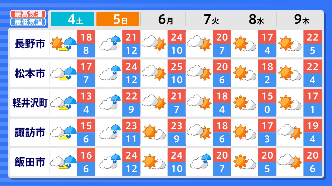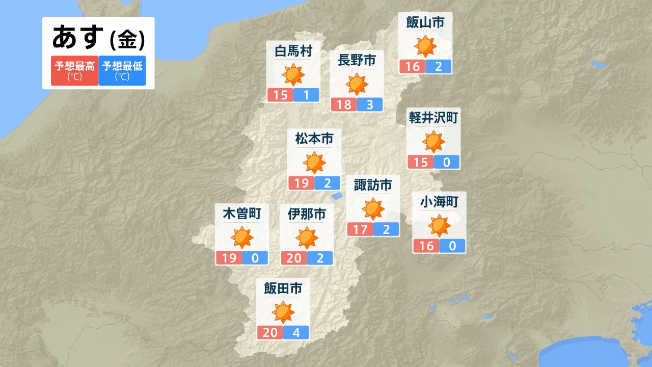 白馬村 長野市 飯山市 軽井沢町 松本市 諏訪市 小海町 木曽町 伊那市 飯田市