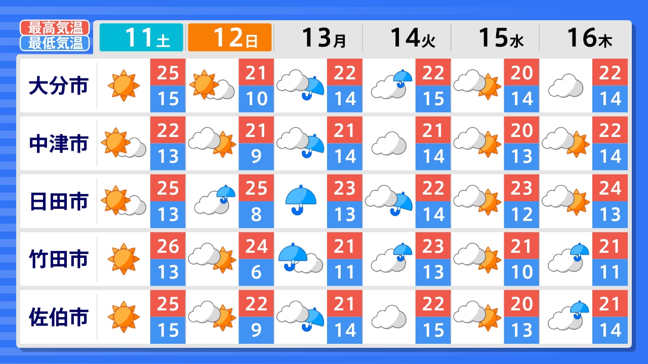 中津市 国東市 別府市 大分市 由布市 日田市 玖珠町 竹田市 豊後大野市 佐伯市