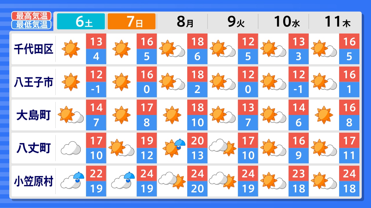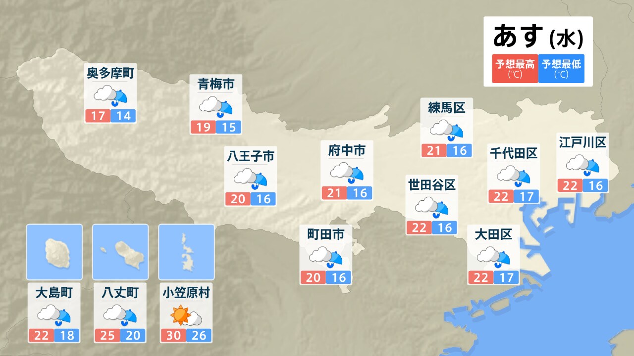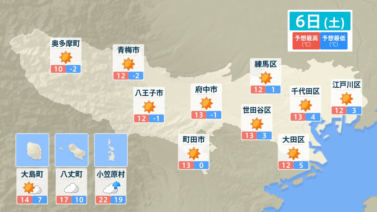 奥多摩町 青梅市 八王子市 大島町 八丈町 小笠原村 府中市 町田市 練馬区 世田谷区 千代田区 大田区 江戸川区