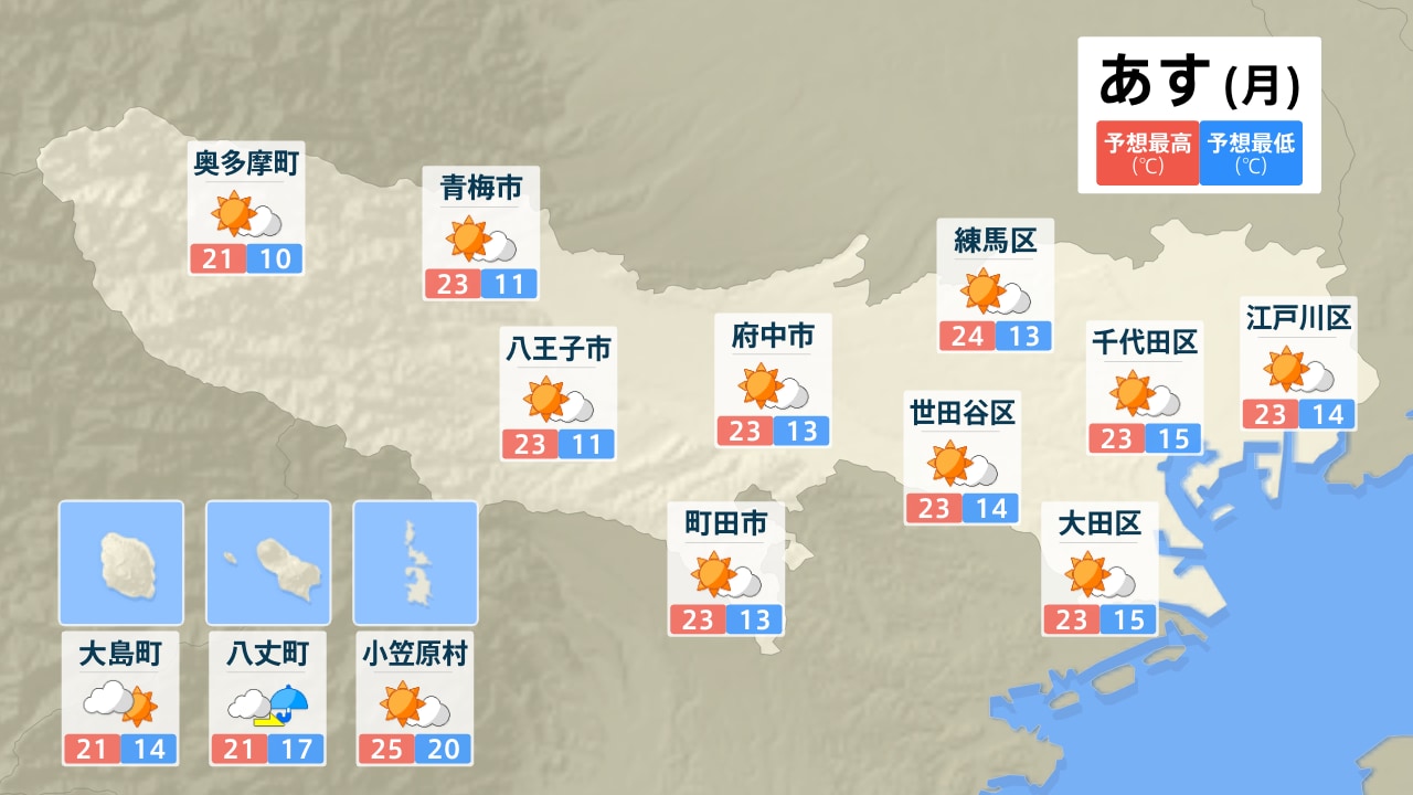 奥多摩町 青梅市 八王子市 大島町 八丈町 小笠原村 府中市 町田市 練馬区 世田谷区 千代田区 大田区 江戸川区