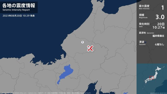 震度1 福井県嶺北 10:27ごろ