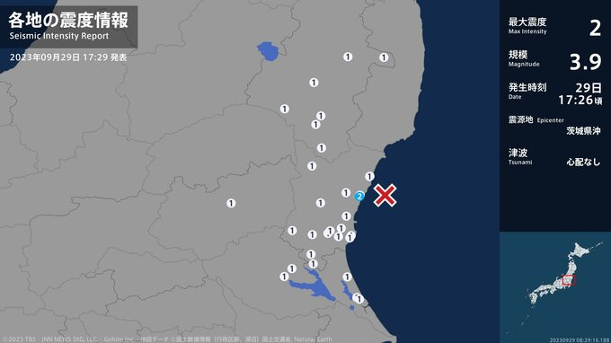 震度2 茨城県沖 17:26ごろ