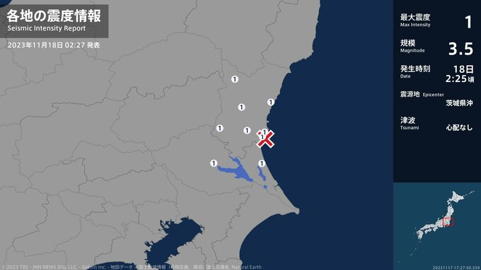 震度1 茨城県沖 02:25ごろ