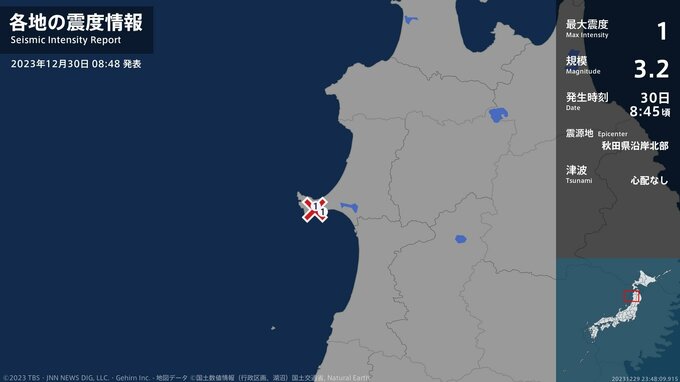 | 緯度経度 | 北緯39.9度 / 東経139.8度 |