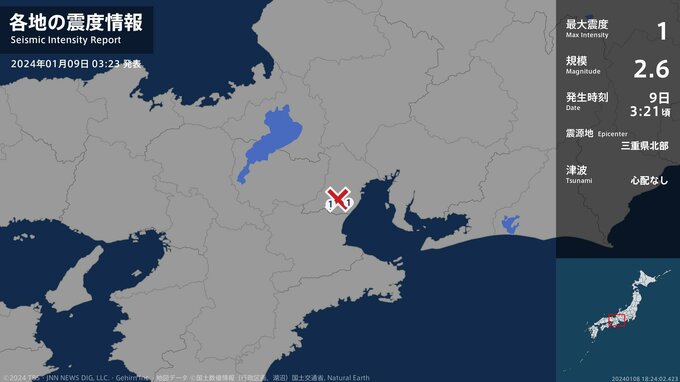 震度1 三重県北部 03:21ごろ