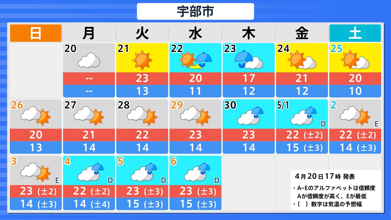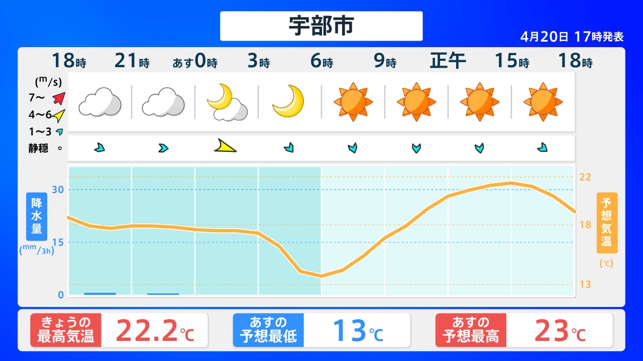 山口県宇部市の天気・防災情報