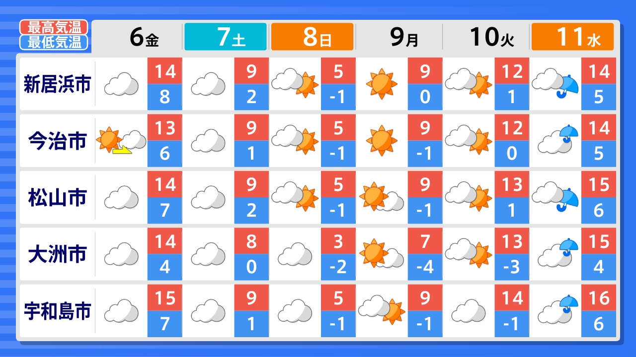 伊方町 大洲市 宇和島市 松山市 久万高原町 今治市 新居浜市 四国中央市