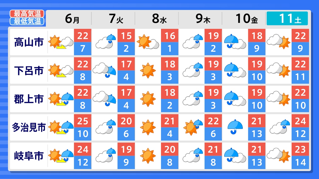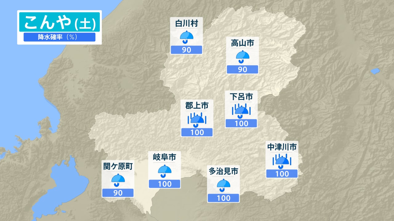 白川村 高山市 下呂市 郡上市 中津川市 多治見市 岐阜市 関ケ原町