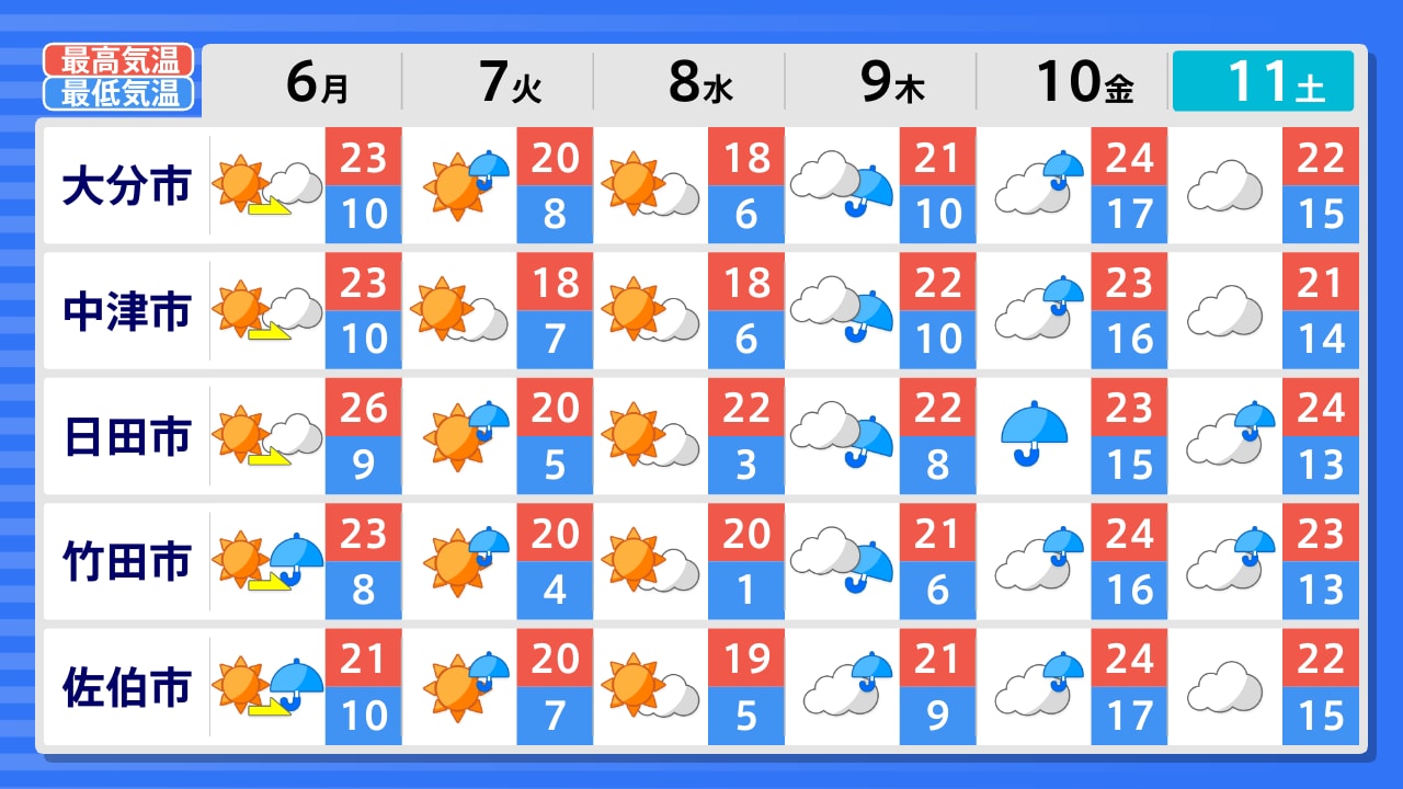 中津市 国東市 別府市 大分市 由布市 日田市 玖珠町 竹田市 豊後大野市 佐伯市