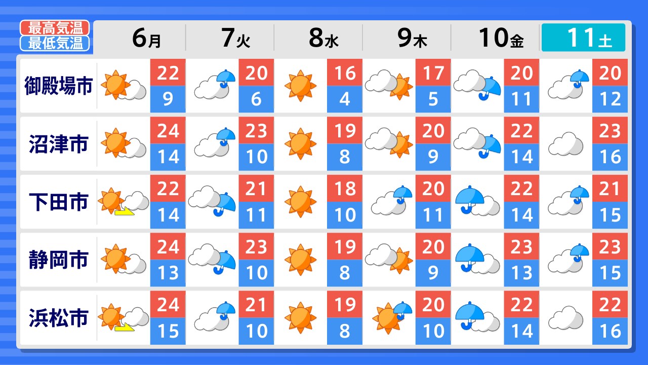 浜松市 川根本町 掛川市 御前崎市 静岡市 富士宮市 沼津市 御殿場市 熱海市 下田市