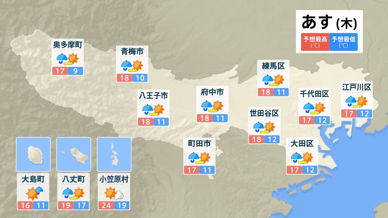 奥多摩町 青梅市 八王子市 大島町 八丈町 小笠原村 府中市 町田市 練馬区 世田谷区 千代田区 大田区 江戸川区