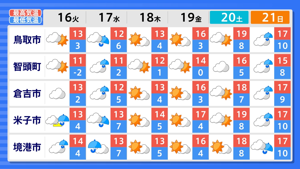 境港市 米子市 日南町 大山町 倉吉市 鳥取市 智頭町 若桜町