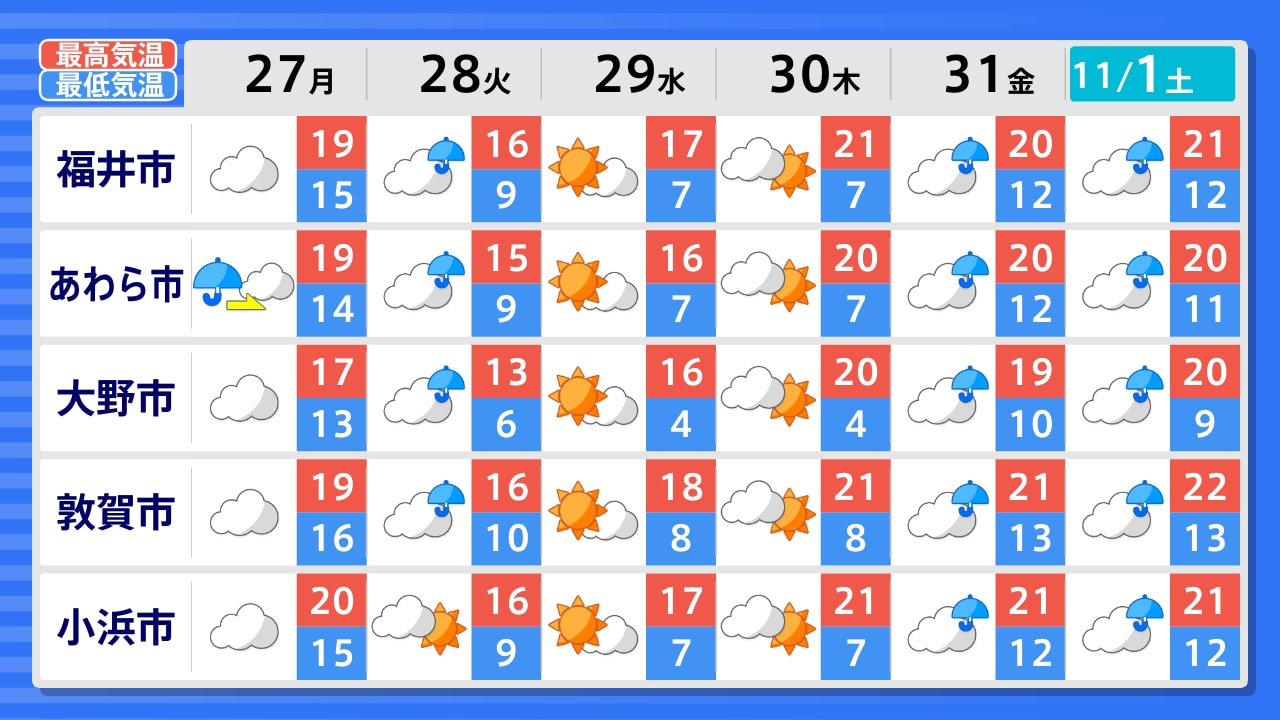 あわら市 大野市 福井市 南越前町 敦賀市 小浜市 高浜町