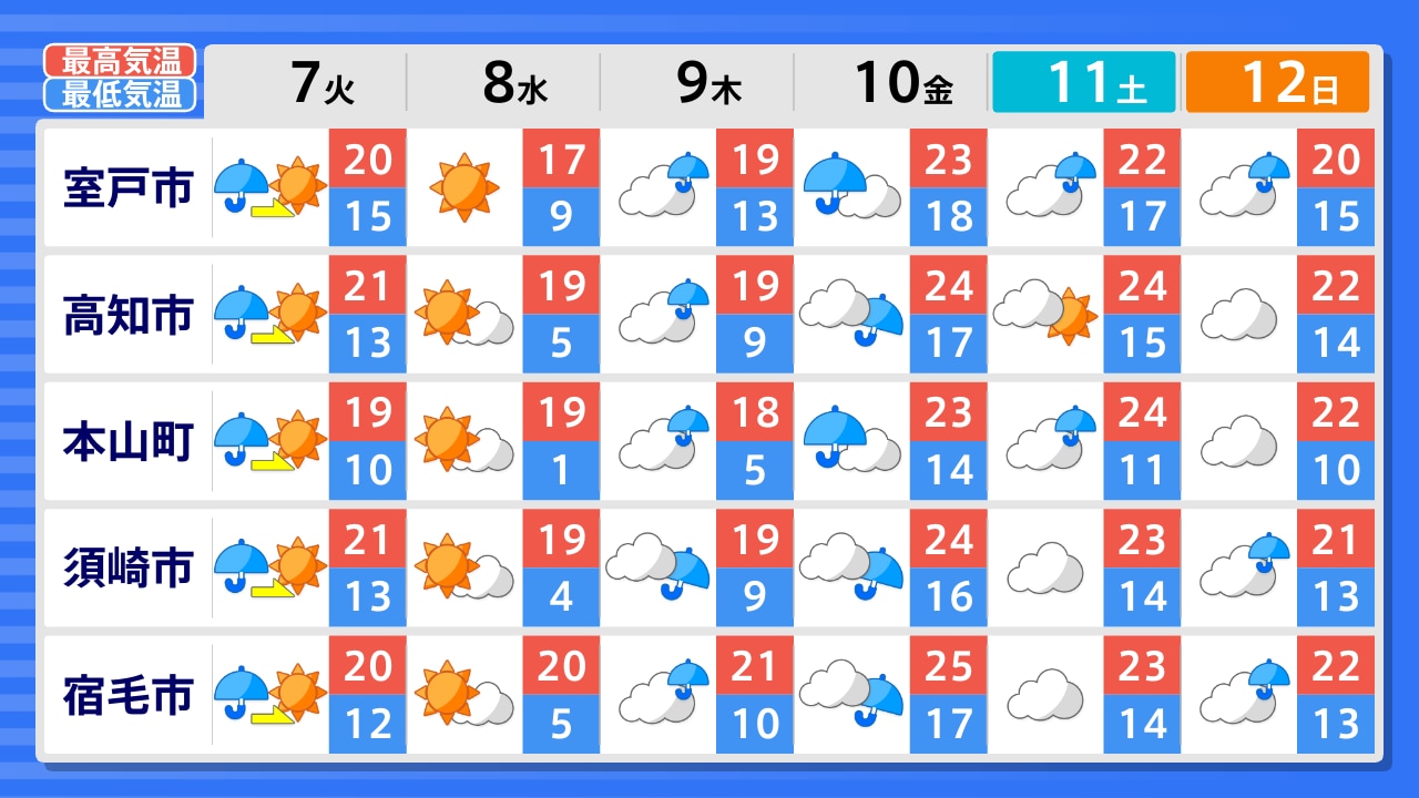 梼原町 四万十町 宿毛市 土佐清水市 須崎市 本山町 高知市 安芸市 馬路村 室戸市