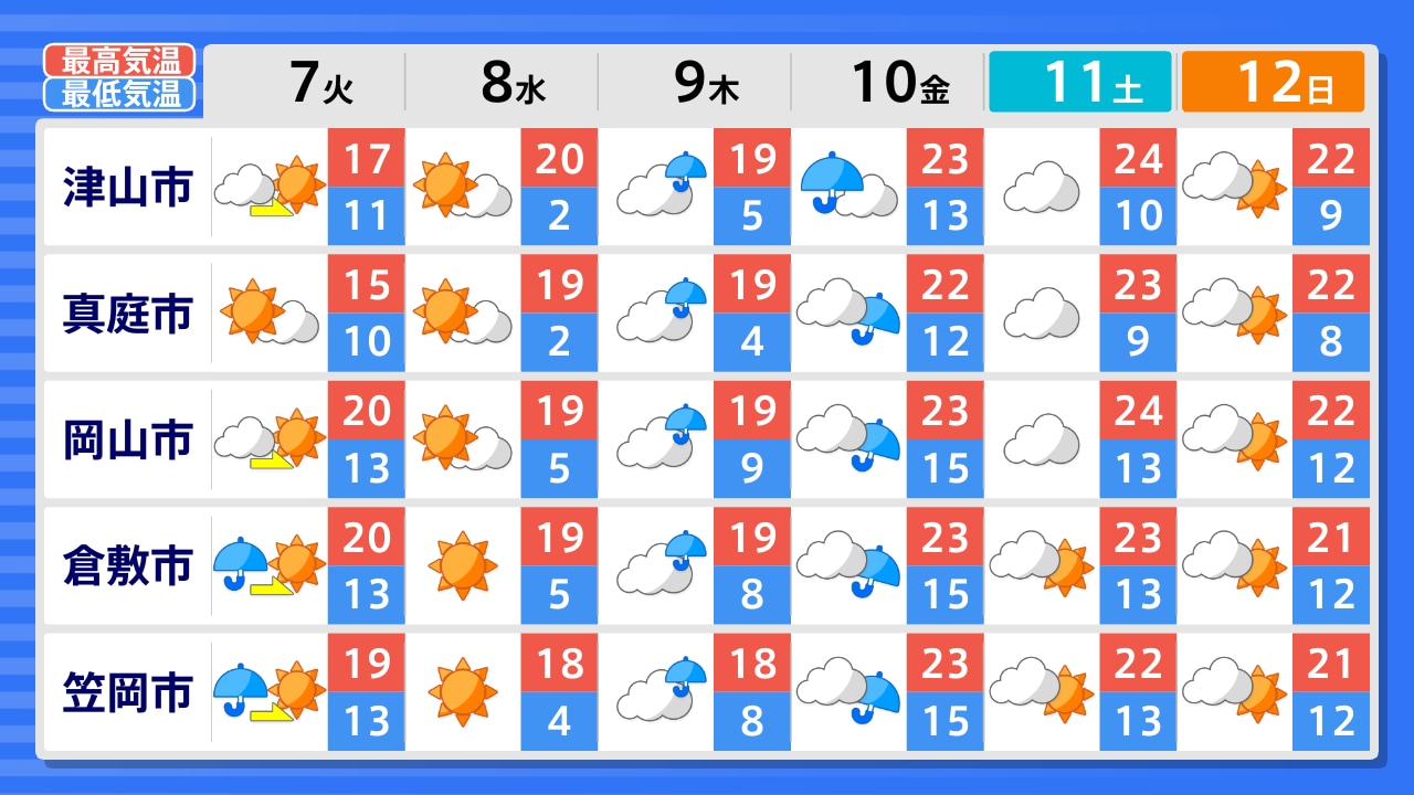 真庭市 新見市 高梁市 笠岡市 倉敷市 津山市 美作市 岡山市 備前市