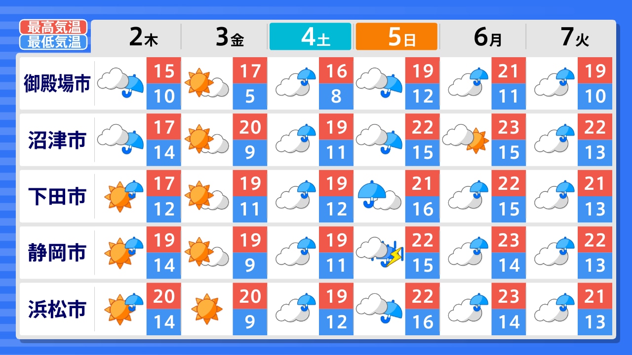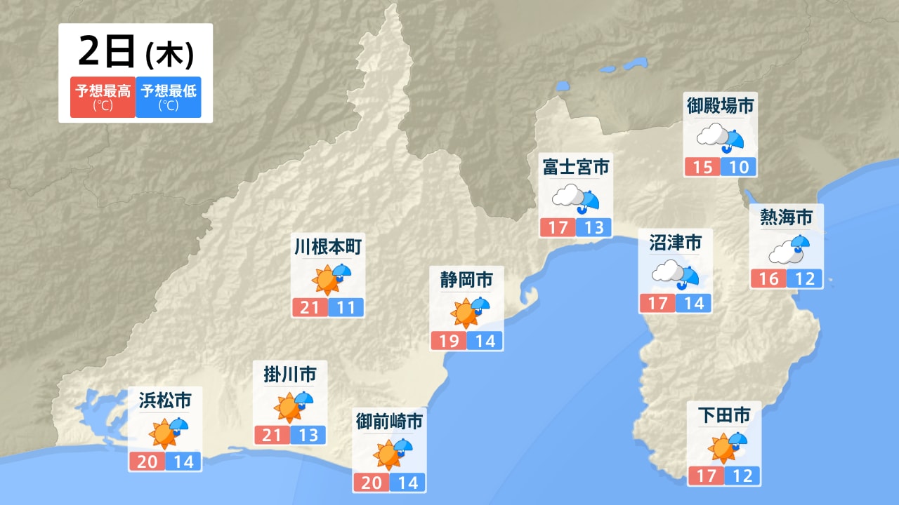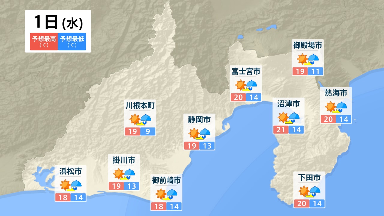 浜松市 川根本町 掛川市 御前崎市 静岡市 富士宮市 沼津市 御殿場市 熱海市 下田市