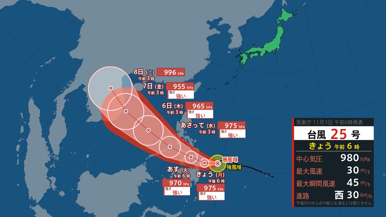 11月に発生した台風25号 1時間に約20キロの速さで西北西へ このあとどこへ?