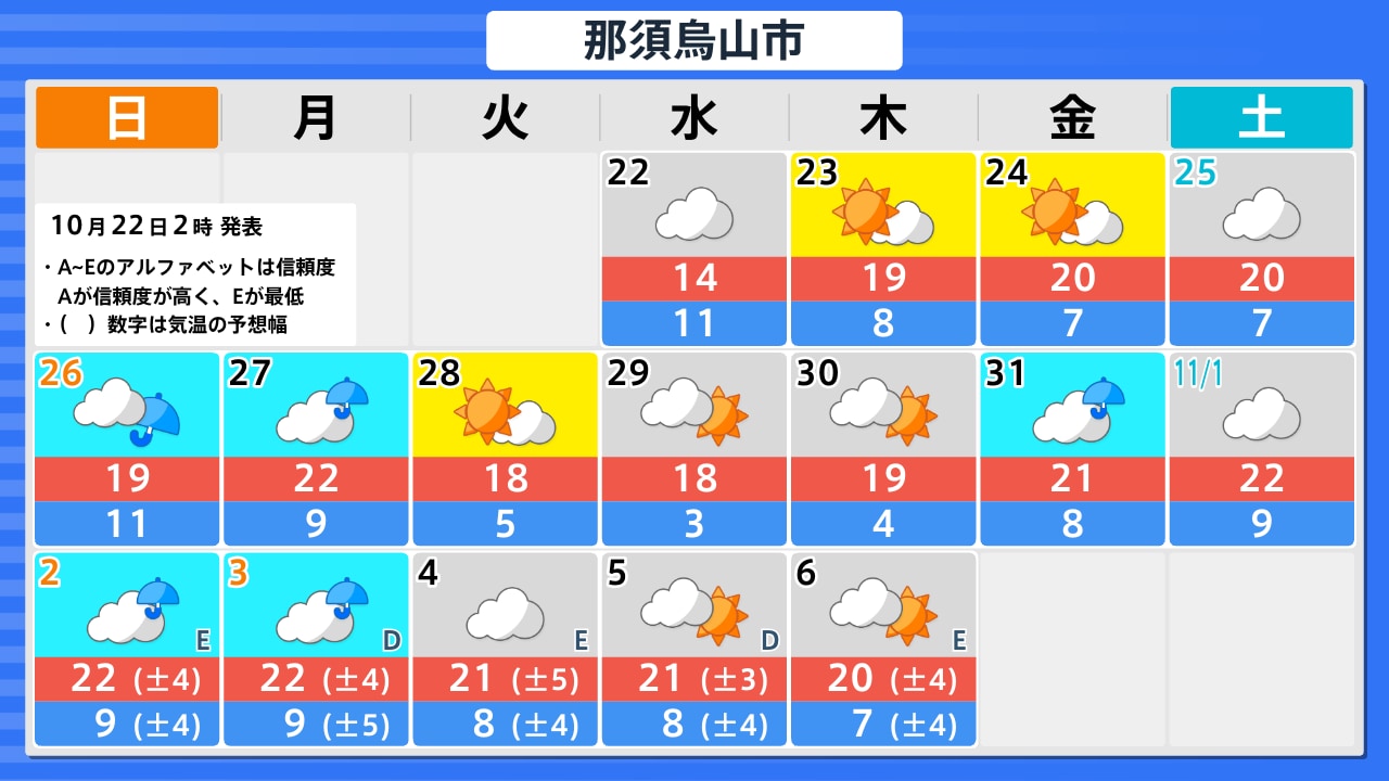 10月22日(水)の天気