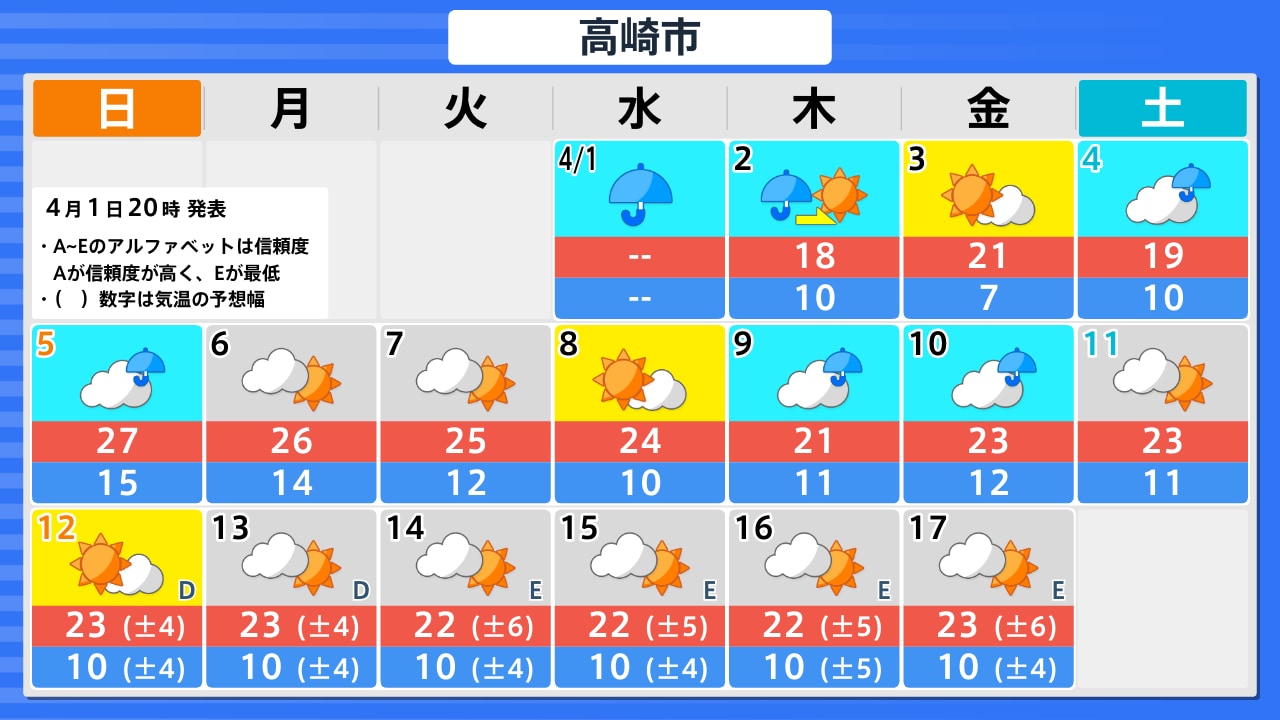 4月1日(水)の天気