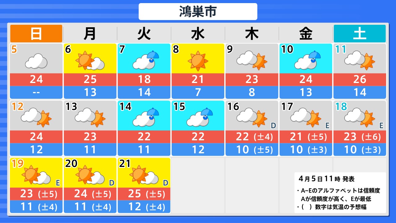 4月5日(日)の天気