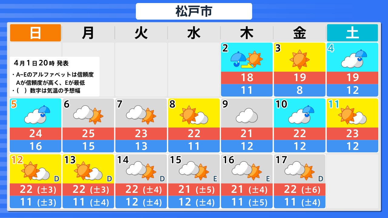 4月1日(水)の天気
