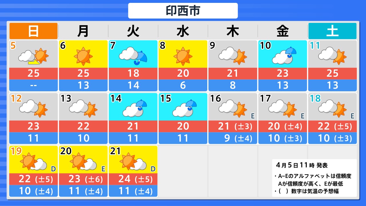 4月5日(日)の天気