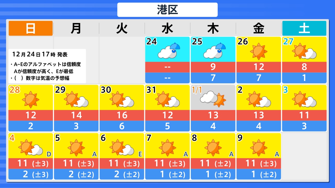 【12月25日 関東の天気】傘とダウンのクリスマス