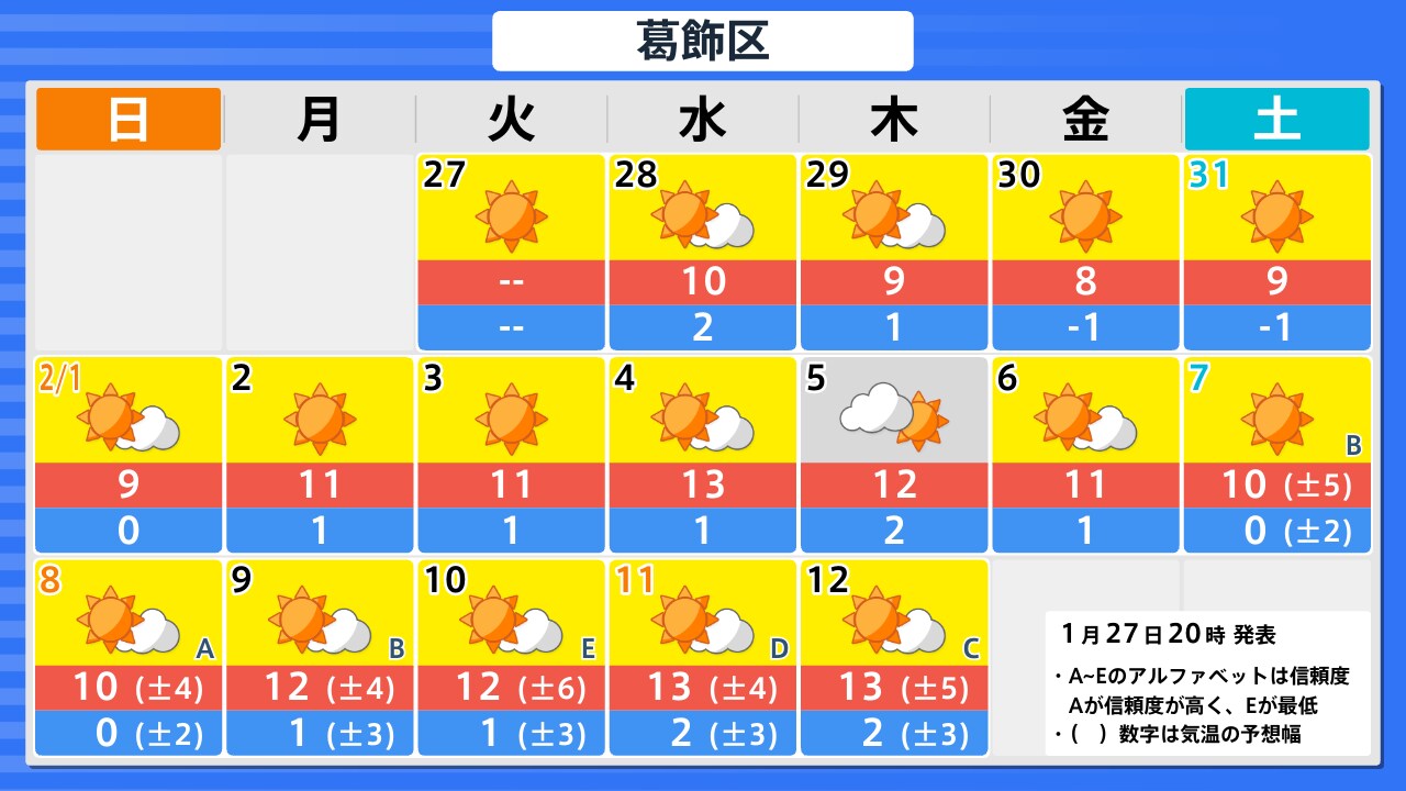 27日(火)は昼ごろから日差し届く 最高気温は10度前後でほぼ平年並み 愛媛
