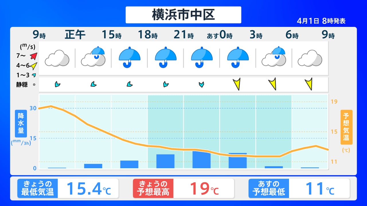 4月1日(水)は再び雨 昼間もヒンヤリ 寒暖差注意 愛媛