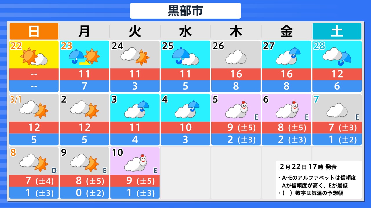 2月22日(日)の天気