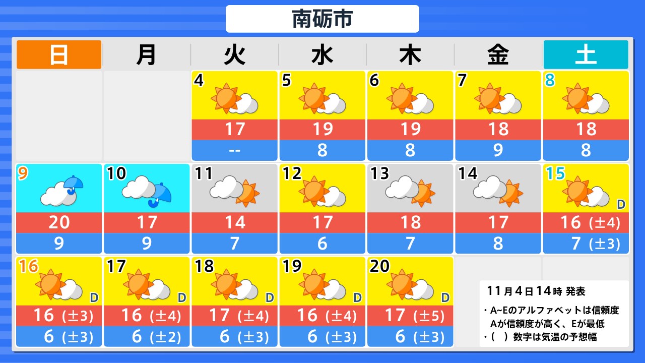 11月4日(火)の天気