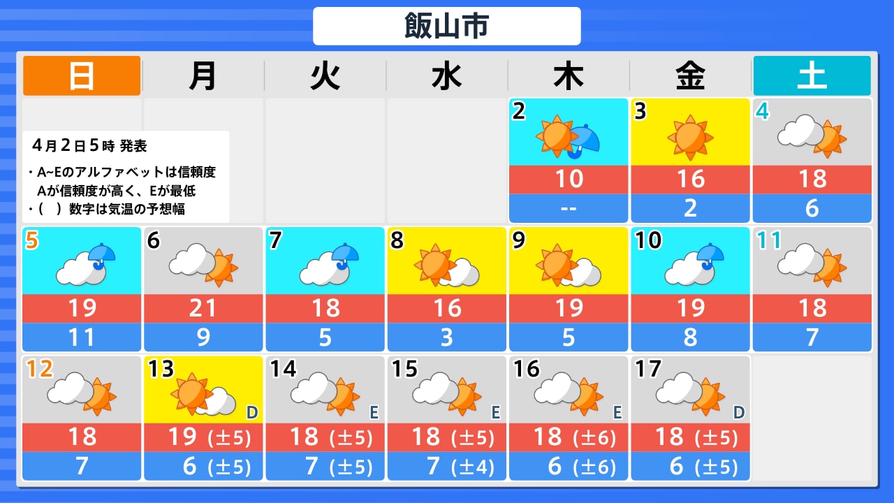 【きょう4/2(木)広島天気】晴れ間が復活 夕方まではにわか雨注意