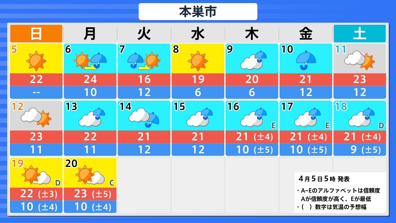 4月5日(日)の天気
