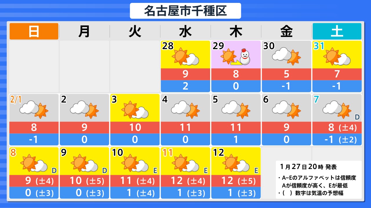 【あす1/28(水)広島天気 】おおむね晴れ 北部は雲多く 夜は雪地点も この時期らしい寒さ