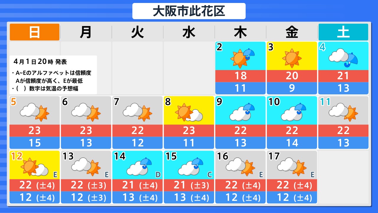 4月1日(水)の天気