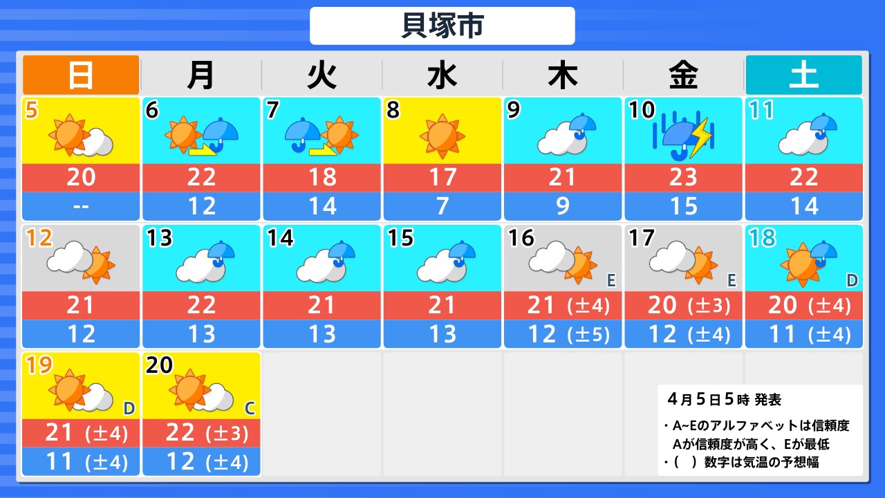 4月5日(日)の天気