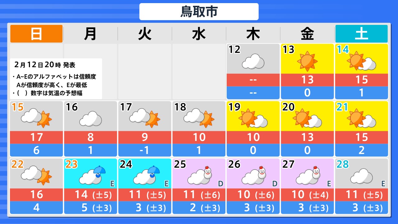 【あす2/13(金)広島天気 】青空広がり春の陽気つづく 一日の寒暖差に注意