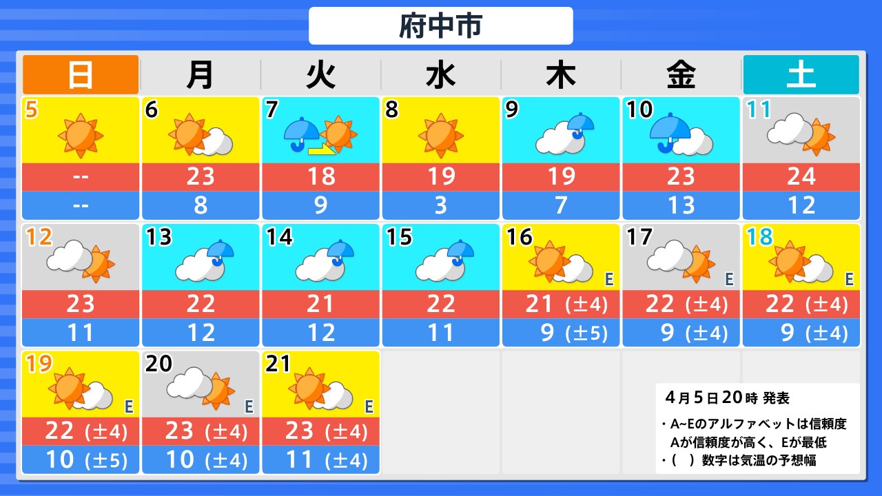 4月5日(日)の天気